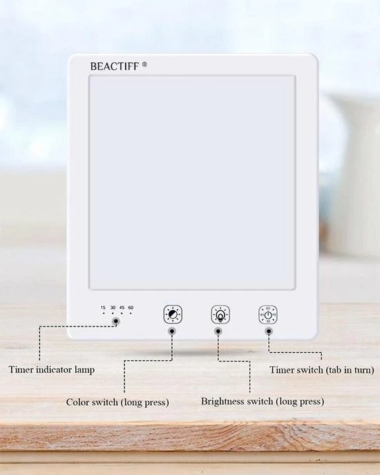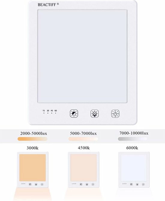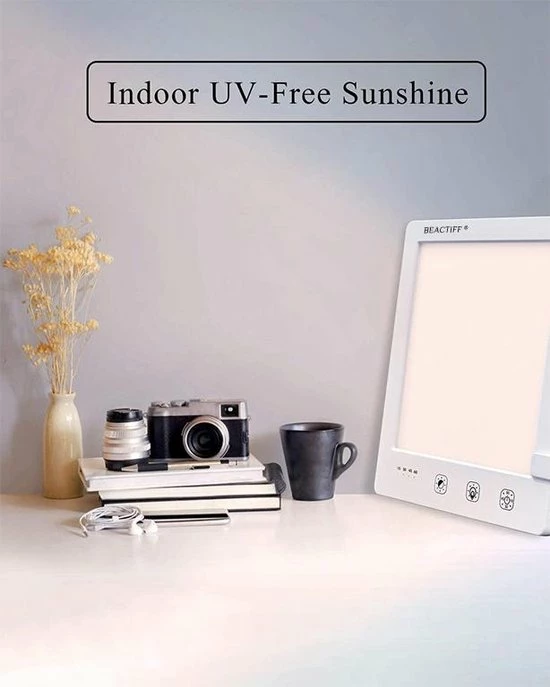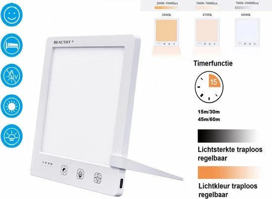 Deze nieuwe Pro Beactiff Daglicht lamp is een energielamp/lichttherapielamp waarmee u fit en energiek wordt, voor een betere stemming, meer energie, een goede nachtrust en een einde aan je winterdepressie. De lamp is het zonnetje in huis en imiteert het daglicht waarmee uw energie niveau en stemming worden verbeterd. Het is aanbevolen om elke dag ongeveer 60 minuten voor de lamp te gaan zitten, het is niet nodig om in de lamp te kijken, de lamp hoeft enkel naar u gericht aan te staan. U kunt dus de krant lezen, werken of uw make-up doen terwijl deze lamp aanstaat!