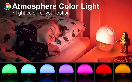 Naast de wekfunctie helpt de Wake-Up Light je ook om op een natuurlijke manier ontspannen in slaap te vallen. Met de slaapmodus bepaal je wanneer de lichtsterkte geleidelijk afneemt. Je hebt keuze uit 4 helderheid standen en 7 lichtthema’s. Zo gebruik je de Wake-Up Light wekker als sfeerverlichting, nacht- of leeslampje. Hiermee bereid je jouw lichaam voor op een optimale en ontspannen nachtrust.