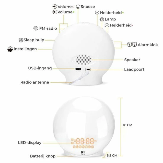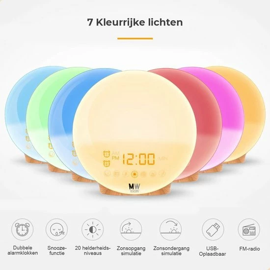 Veel van de standaard verkrijgbare wekkers op de markt wekt jou niet op de juiste manier. Door te kiezen voor de innovatieve Wake-Up Light van MW Shops maak je van jouw ochtendroutine een vrolijke ervaring en geniet je van de dag. Dit bevorderd jouw gemoedstoestand, prestaties, productiviteit en energieniveau. Wie wilt dat nou niet?