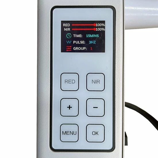 Het near infrared gedeelte van de licht therapie lamp (850nm) beschikt over een instelbare pulsfrequentie van 0 tot 20 Hz.