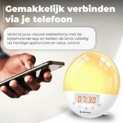 Verbind jouw nieuwe wekkerlamp met de bijbehorende app en bedien de lamp volledig via handige appfuncties en voice control. Zo pas je jouw instellingen aan waar en wanneer je maar wilt en schakel je met Alexa of Google gemakkelijk het licht uit wanneer je lekker in bed ligt. De app is te downloaden in de App Store en Play Store, zo is de app ook voor iedereen toegankelijk.