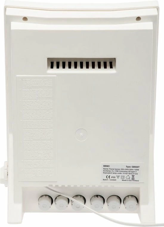 De BBWC gezichtsbruiner 926 heeft zes UV lampen van ieder 15 Watt. Verder is deze gezichtsbruiner voorzien van een aluminium reflectorplaat voor een beter resultaat.