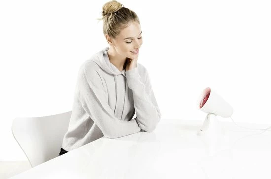 De Beurer IL21 infraroodlamp verwarmt en verlicht pijnlijke spieren. Deze compacte tafellamp straalt IR-B licht uit dat de bovenste lagen van je huid en je spieren verwarmt. Een behandeling van 12 minuten is al genoeg om pijn in je spieren te verminderen. Zet de lamp op een stabiele ondergrond en ga ontspannen ervoor zitten op een stoel. Dankzij de 5 verschillende standen richt je de lamp precies op de te behandelen plek. De lamp heeft een vermogen van 150 watt en is veilig in gebruik. Het licht is UV-vrij en daardoor niet schadelijk voor je huid of ogen.