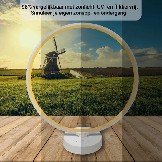 De daglichtlamp werkt het beste als het licht op je ogen valt, maar je hoeft niet recht in de lamp te kijken. De lamp functioneert perfect wanneer je het naast je op je bureau, tafel of op je nachtkastje hebt staan.