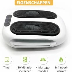 Het apparaat kan voor zowel de kuiten, dijen, benen of rug worden gebruikt. De tijd, snelheid en warmte is handmatig aanpasbaar. Dit apparaat biedt 4 verschillende massageprogramma’s en 10 vibratie standen. Het bloedcirculatieapparaat heeft een vibratiefunctie voor een vibrerende massage, kneedrollers voor een diepe massage en een infrarood warmtefunctie voor een optimaal en ontspannend effect.