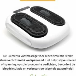 Heb je last van klachten, zoals: pijn, slechte bloedsomloop, hielspoor, gespannen voeten en benen, overmatig vocht in voeten, stijfheid of rusteloze benen? Beweging en een goede bloedsomloop is de basis om deze klachten te voorkomen en verminderen. Het Calmenta bloedcirculatieapparaat met massage- en warmtefunctie biedt een oplossing. Met 4 verschillende massageprogramma’s en 10 vibrerende standen is een bezoek aan de massagesalon overbodig. Behandel nu thuis jouw klachten met het voetmassage apparaat. Merk snel verbetering van de bloedsomloop en hierdoor vermindering van jouw klachten.