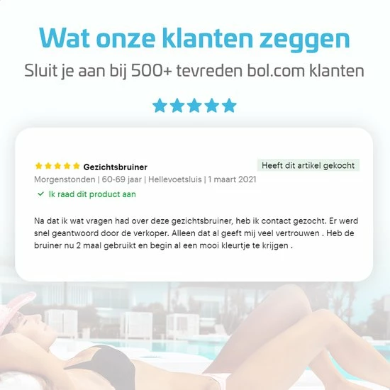 Onze techniek bootst het natuurlijke spectrum van zonlicht na, waardoor de aanmaak van vitamine D op een natuurlijke manier wordt gestimuleerd. En dat is heel belangrijk, want veel Nederlanders kampen zonder het te weten met een vitamine D tekort. Zo krijg je tijdens elk gebruik van de gezichtsbruiner niet alleen een gezond kleurtje, maar voel je je ook nog eens het hele jaar door fit!
