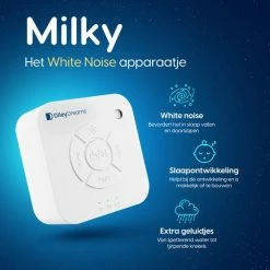- Multifunctioneel ? De Diley Dreams Milky slaaptrainer is geschikt voor baby?s, kinderen en volwassenen. Kies zelf ??n van de 9 rustgevende geluiden die 15, 30 of 60 minuten doorspelen. De slaaptrainer is eenvoudig te bevestigen aan bijvoorbeeld een kinderwagen, op te hangen aan het bijgeleverde ophangtouwtje of neer te zetten naast je bed.