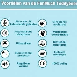 Geef je baby de nachtrust die ze verdienen met deze knuffel uil met slaapgeluiden, hartslaggeluid en nachtlampje. De uil beschikt over 10 slaapmuziekjes, 3 natuurlijke slaapgeluiden zoals hartslag- of watervalgeluid en een sterrenlicht projector. Kies het gewenste licht en geluid en uw baby zal heerlijk in slaap vallen. De knuffel uil schakelt zichzelf na een half uur uit als er geen nieuwe geluiden worden gekozen.