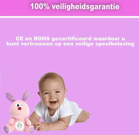 Knuffel konijn met white noise geluiden, meer dan 10 slaapmuziekjes en nachtlampje.