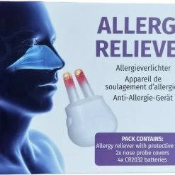 Deze allergie verlichter maakt gebruikt van lichttherapie op twee specifieke golflengtes om de cellen die histamine vrijgeven te onderdrukken. Met het gebruik van lichttherapie zorgt dit apparaat ervoor dat u op een rustige manier van de symptomen van allergische reacties op diverse allergenen afkomt. Denk aan graspollen, kattenhaar en huisstofmijt. U kan de verlichter op zichzelf of naast uw gebruikelijke medicatie gebruiken. Het is aanbevolen om het apparaat twee keer per dag te gebruiken, met vijf tot zes uur tussen elk gebruik.