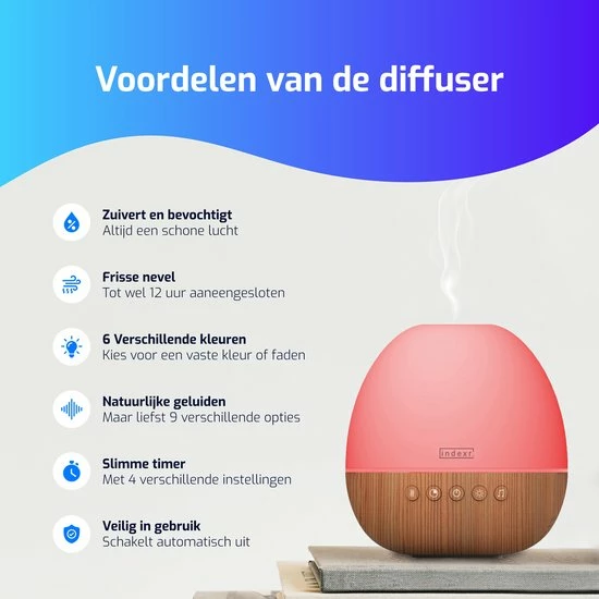 - Voorzien van zes rustgevende lichtkleuren