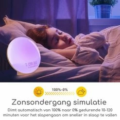 Met zonlicht simulatie word je niet alleen fijn wakker, maar val je ook nog eens rustiger en sneller in slaap. Gedurende een zelf in te stellen tijdspan neemt de lichtsterkte geleidelijk af en word jouw lichaam optimaal voorbereid op een goede nachtrust. Zo cre?er je de perfecte sfeer voor ontspanning en val je zonder problemen in slaap.