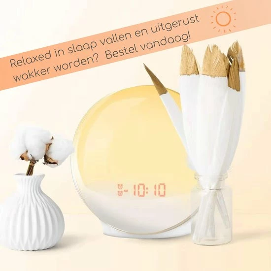 Met een wake up light word jij uitgerust en ontspannen gewekt door een fijne zonsopgang simulatie. De lichtsterkte neemt gedurende 10 tot 60 minuten geleidelijk toe tot 100%, zodat jouw lichaam op natuurlijke wijze een seintje krijgt en weet dat het tijd is om op te staan en te beginnen aan een nieuwe dag.