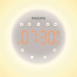 Door de simulatie van de zonsopkomst word je geleidelijk gewekt, waardoor je meer energie hebt in de ochtend. Binnen 30 minuten wordt je kamer gevuld met helder geel licht. Dit proces van veranderend en feller wordend licht stimuleert je lichaam om op een natuurlijke manier wakker te worden. De wake-up light bevat tevens een bedlampje met 10 lichtinstellingen. De helderheid van het scherm kun je naar wens instellen door middel van 4 verschillende instellingen.