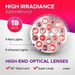 POPPII VOORDELEN- Rode en Infrarode golflengten van licht stimuleren de mitochondriën in uw cellen, net als natuurlijk zonlicht, waardoor oxidatieve stress wordt verminderd en de bloedsomloop toeneemt. Hierdoor is uw lichaam in staat meer kernenergie te maken om zichzelf van energie te voorzien. Het is een verbazingwekkende medicijnvrije genezingsmethode voor depressie, gewrichtspijn, ontstekingen, ernstige huidaandoeningen en nog veel meer wanneer het met de juiste golflengtes wordt ingenomen.