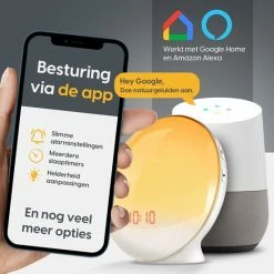 Door de zonsopgangsimulatie die deze lichtwekker bevat, zal jij geleidelijk worden gewekt, hierdoor zal jij de ochtend met meer energie beleven. Jouw kamer zal binnen 30 minuten gevuld worden met een fijn licht. Dit stimuleert jouw lichaam om op een natuurlijke en gezonde manier wakker te worden. Uit onderzoek is gebleken dat je de dag hierdoor fitter zal starten. De wake up light functioneert alleen als die is aangesloten op netstroom. Hij is te besturen met App en daardoor zéér makkelijk in gebruik.