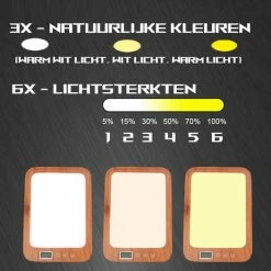 Deze daglichtlamp heeft een timerfunctie, dit hebben de meeste lampen niet. Hiermee kun je instellen hoeveel licht je per sessie binnen wilt krijgen. Je kan kiezen uit 10, 20, 30, 40, 50 en 60 minuten. Daarnaast kun je ook de lichtsterkte bepalen. Iedereen is anders, dus voor iedereen hebben we ook wat anders! De lichtsterkte functie is heel praktisch, wanneer je net wakker bent is fel licht bijna verblindend.