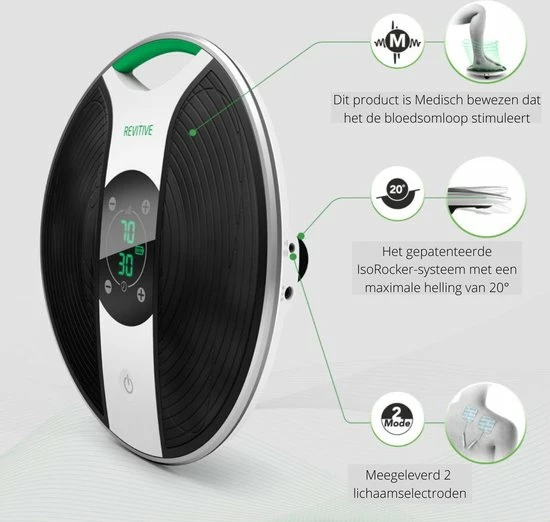 Om de veneuze terugstroom te verbeteren, stuurt de gepatenteerde Oxywave-technologie van Revitive die is gebaseerd om EMS, elektrische spierstimulatie die wordt gebruikt in praktijken in de kinesitherapie, elektrische pulsen onder de voetzool waardoor het samentrekken en ontspannen van de beenspieren wordt geactiveerd, zoals een pomp. Hoe meer je spieren werken, hoe meer de spieren samentrekken en hoe eenvoudiger de aders het bloed naar het hart kunnen pompen. Bij regelmatig gebruik verstevigt de Revitive-technologie de beenspieren en verbetert het apparaat actief de bloedsomloop om de goede gezondheid van uw benen te waarborgen.