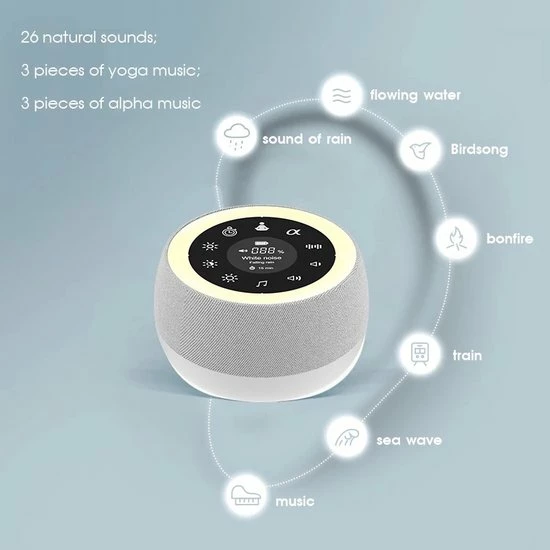 ? Keuze uit maar liefst 31 natuurlijke geluiden, inclusief white noise,