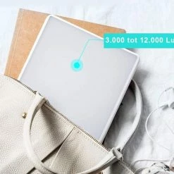 De daglichtlamp heeft zelfs een intensiteit van 20.000 lux als je het 1 cm van je gezicht houdt.