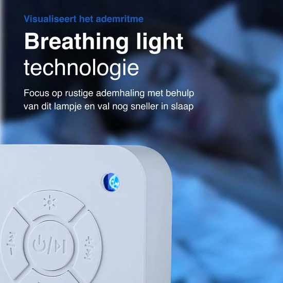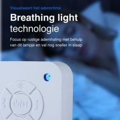 Dit apparaatje is voorzien van een breathing light. Dit betekent dat er een lampje is dat ademritme visualiseert. Dit licht helpt jou te ontspannen en de ademhaling aan te passen aan de snelheid van het licht. Je ademhaling vertraagt zonder en bij na te denken waardoor je sneller in slaap valt.