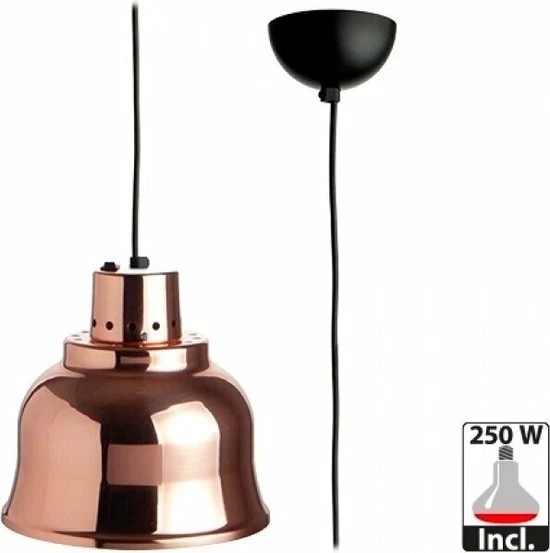 Koper, geeft onmiddellijk directe hitte, verschaft een doordringende warmte zonder dat het oppervlakte van saus of jus stolt, makkelijk te installeren, wordt met infrarood lamp geleverd (250W)